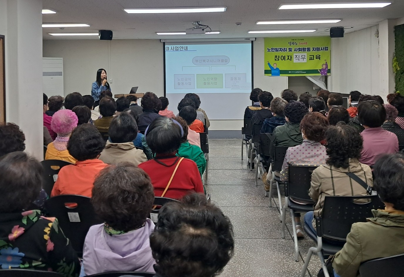 1. 일시 : 2026. 4. 17.(금)   2. 대상 : 성장튼튼도우미, 함께튼튼도우미, 모바일튜터사용지도사 참여자   3. 장소 : 부산북구시니어클럽 지하교육장   4. 내용 : 성장튼튼도우미, 함께튼튼도우미, 모바일튜터사용지도사 사업단 참여자에게 직무교육을 통해 근무 시 수행 업무 및 방법과 수요처인 복지시설의 특성을 숙지하고 서류작성법 등 기타 안내사항을 안내하여 최적화된 서비스를 제공한다.   |