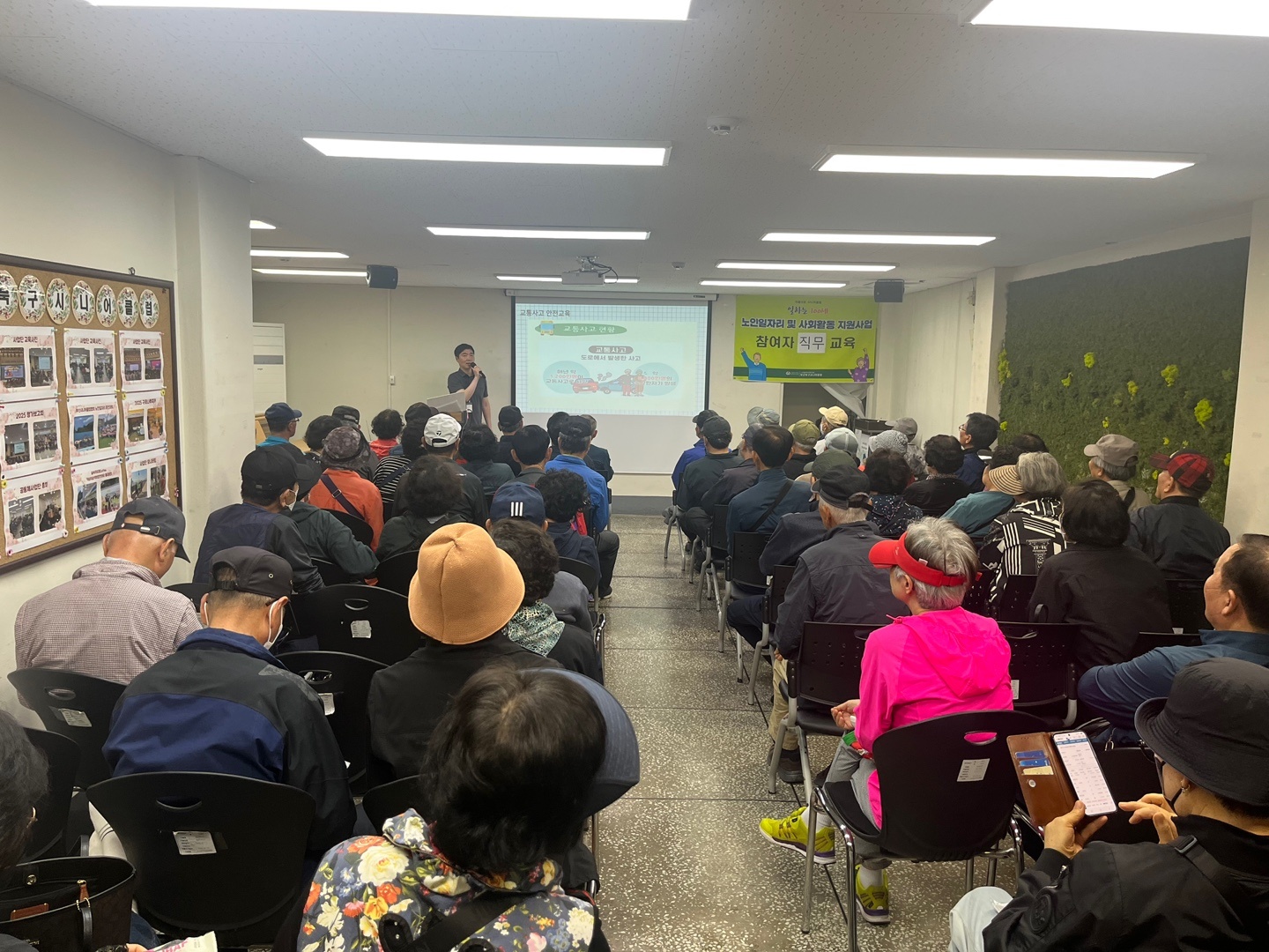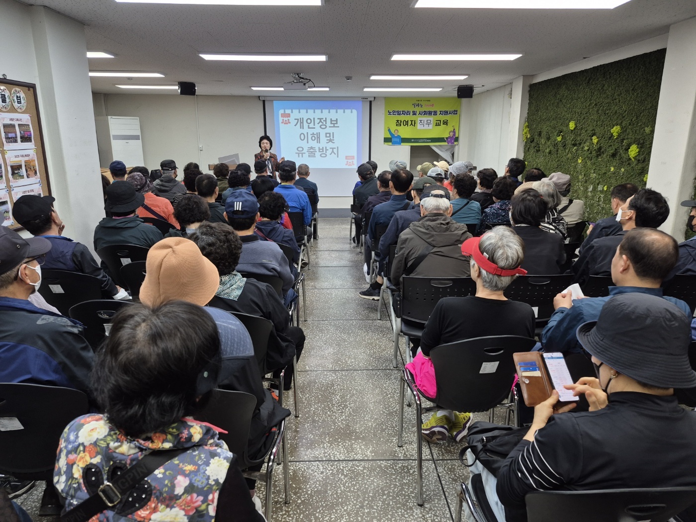1. 일시 : 2026. 4. 20.(월)~2026. 4. 21.(화)   2. 대상 : 펭수안전지킴이 참여자   3. 장소 : 부산북구시니어클럽 지하교육장   4. 내용 : 펭수안전지킴이 참여자에게 디지털 시대 적절한 소양과 역량을 갖출 수 있도록 스스로의 개인정보를 보호하는 방법과 스마트폰 활용 및 보안설정 등 실습교육을 진행하고, 안전교육을 통해 펭수안전지킴이 노인일자리 참여자들의 안전사고를 미연에 방지하고 대처하는 방법을 학습하기 위해 펭수안전지킴이 참여자에게 소양 및 안전교육을 실시함.   |
