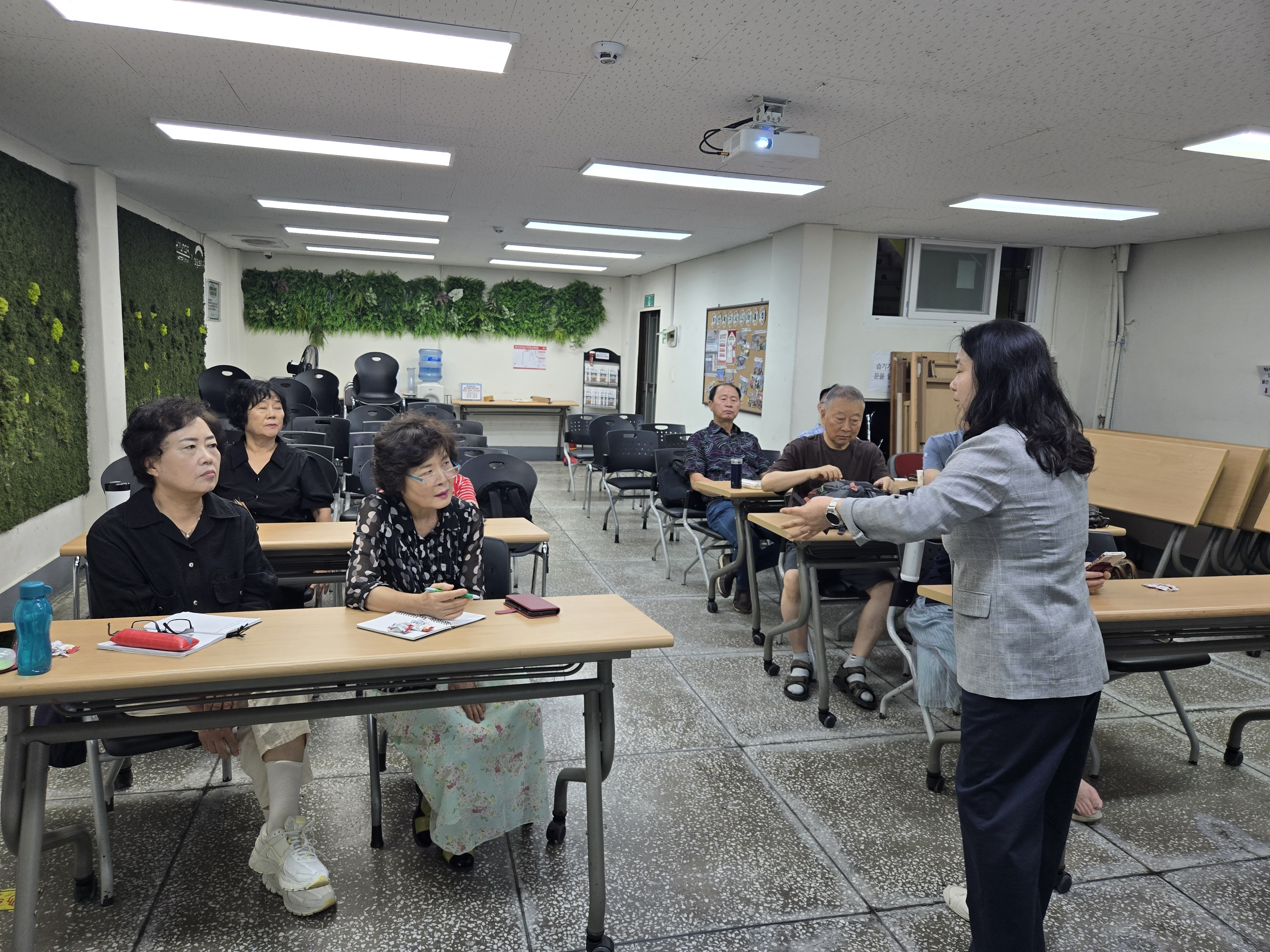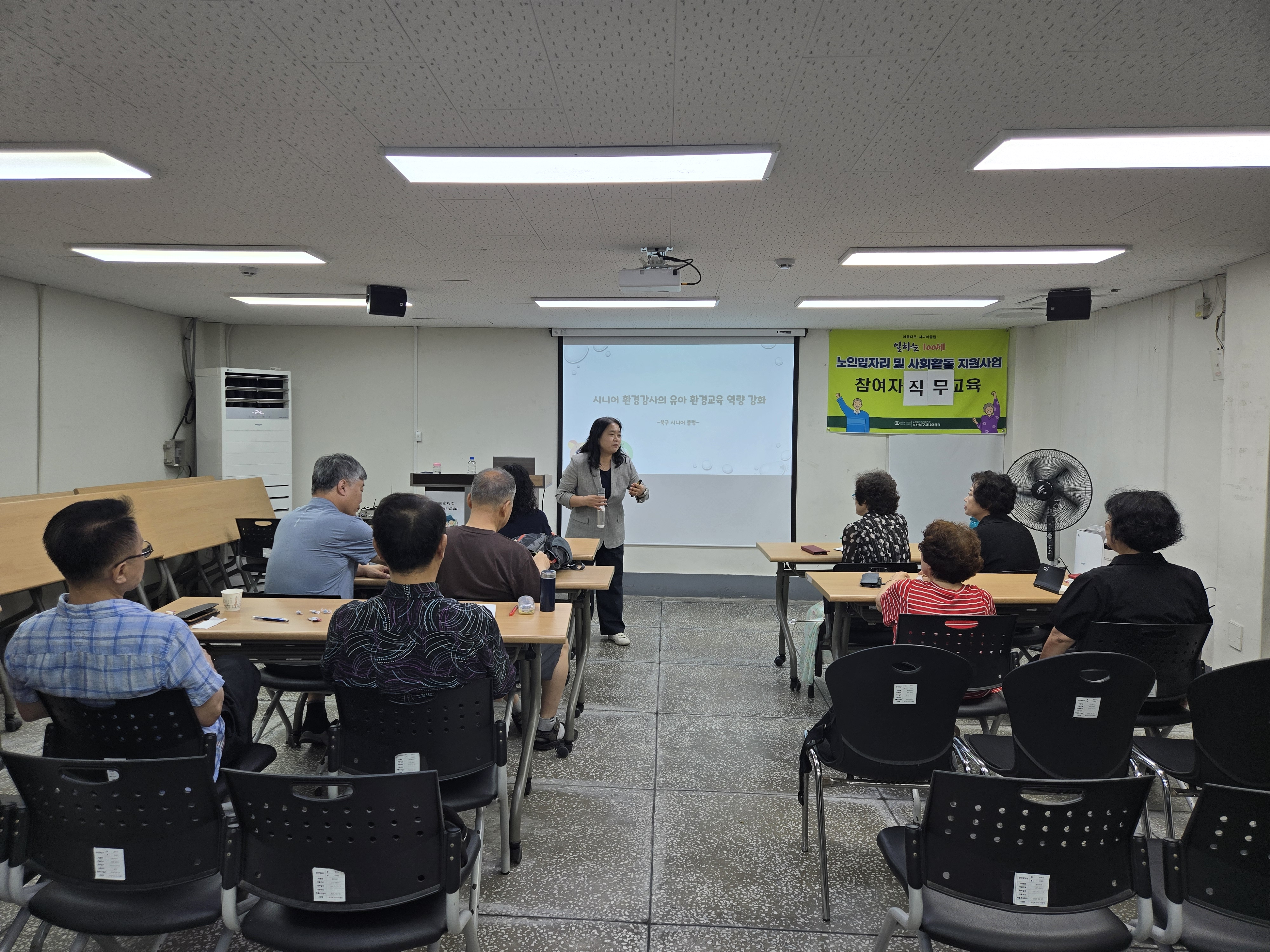 일자: 2025. 9. 10 (수)   대상: 환경도슨트 참여자   장소: 부산북구시니어클럽 지하교육장   내용: 환경도슨트 사업단 참여자에게 전문강사를 통해 환경 지식을 배우고, 강의법을 현장 교육생들에게 활용할 수 있도록 역량강화를 위해 직무교육을 실시함.   |