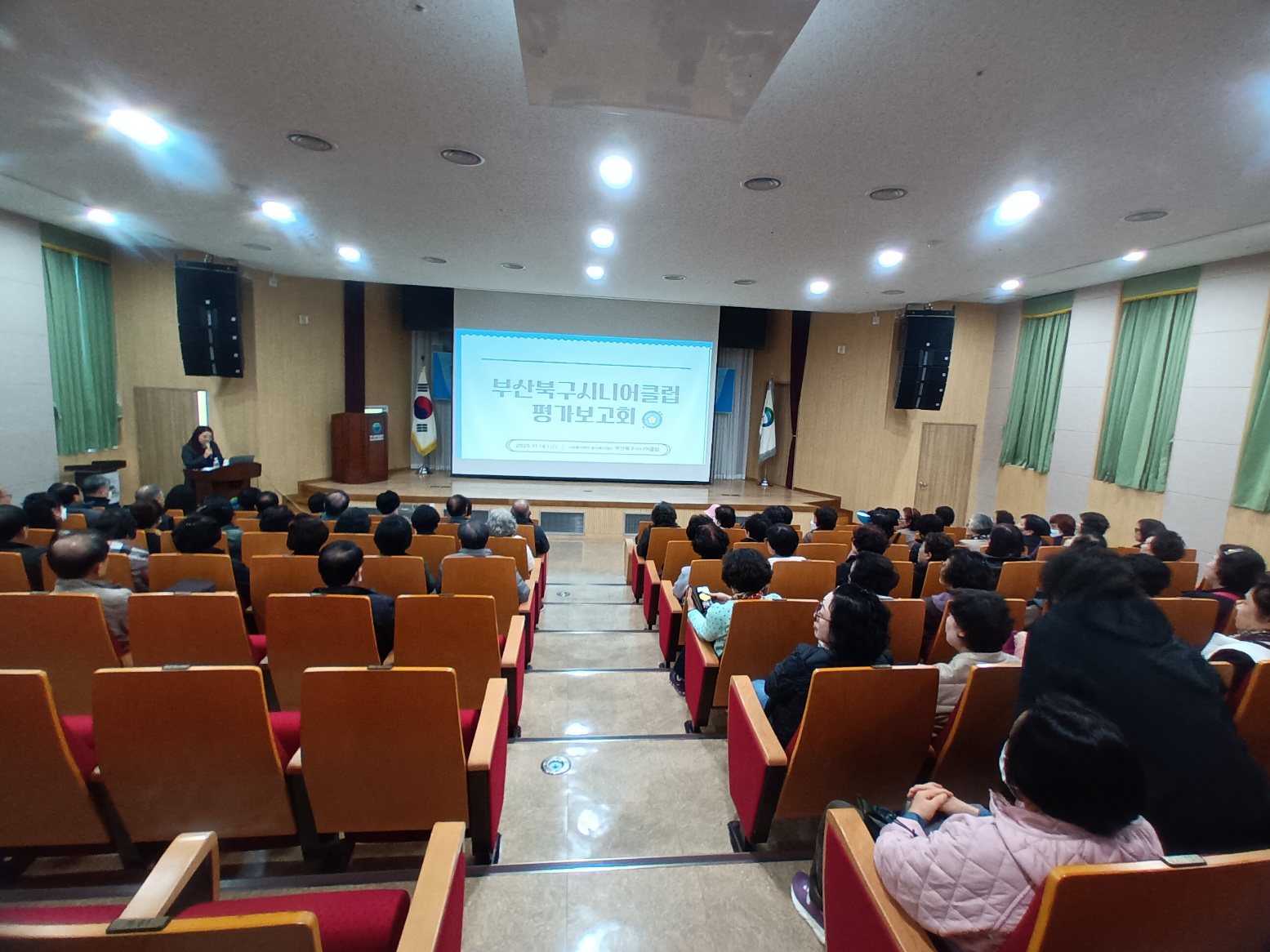 1. 일자 : 2025. 11. 14.(금) 13:00 ~ 15:00   2. 장소 : 한국환경공단(부울경) 환경본부 1층 대강당   3. 내용 : 반짝반짝어린이돌보미, 시니어금융서포터즈, 시니어주거복지지원단, 환경도슨트 사업단 참여자에게 사업 실적 및 추진방향을 보고하고, 내년 사업의 원활한 준비를 위해 평가보고회를 진행함.   |